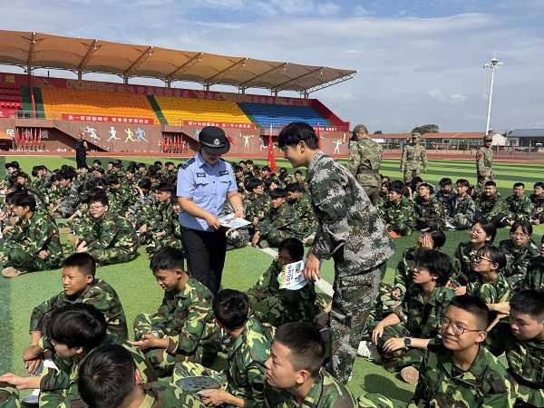 为进一步加强青少年禁毒宣传教育,提高青少年识毒、防毒、拒毒的意识和能力,8月22日,洪洞县公安局禁毒大队联合社区戒毒社区康复服务中心,以新生军训为契机,在洪洞县第一中学开展了以“青春无毒,迷彩护航“为主题的禁毒宣传活动,为刚踏入高中校园的学子们上了一堂生动的“开学第一课”。 活动中,禁毒民辅警与禁毒社工通过发放禁毒宣传手册、展示仿真毒品模型、讲解真实案例等多种形式,向同学们详细讲解了毒品的种类、危害以及如何防范毒品侵害。
