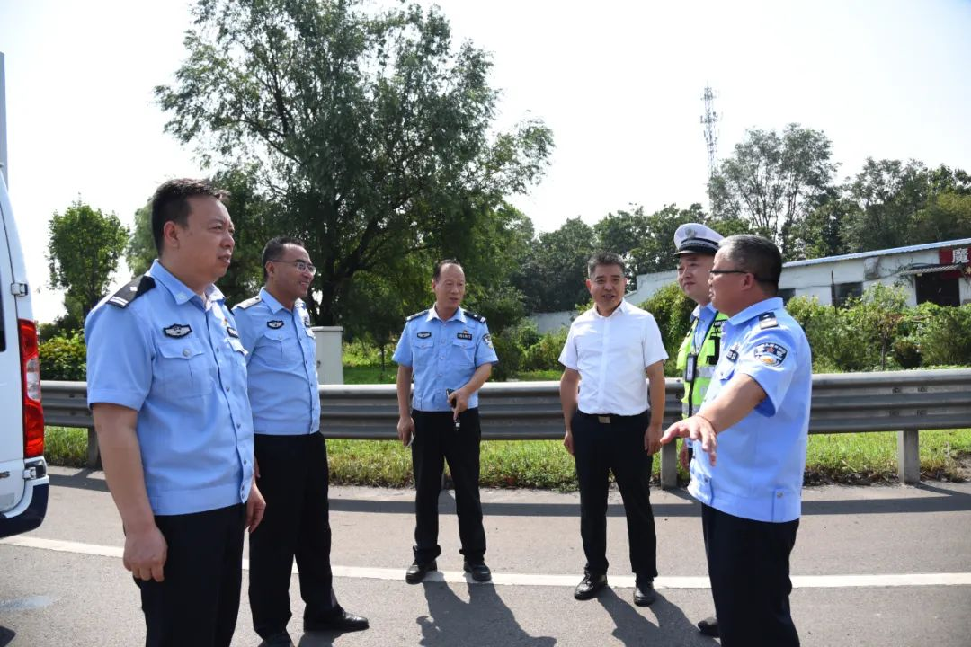 8月14日,河津市委常委、政法委书记李冬青就道路交通安全隐患整治工作进行了实地调研。市公安局副局长、交通管理大队大队长高军茂、交警大队班子成员参加调研。