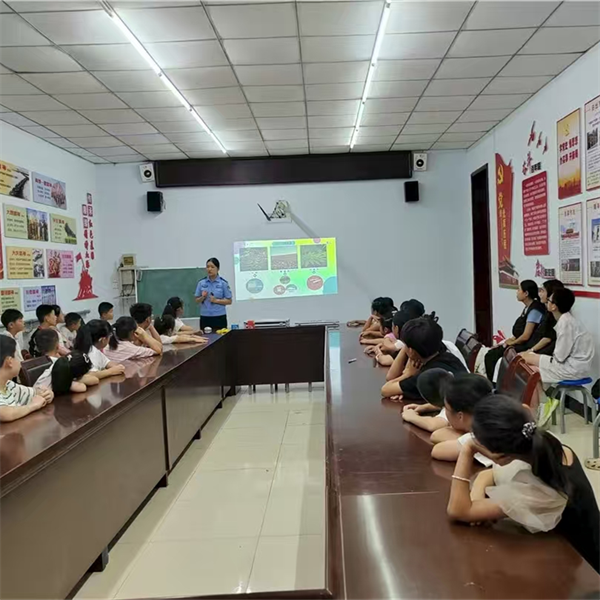 为筑牢青少年禁毒思想防线,护佑“花朵”健康成长,7月31日,永济董村戒毒所民警联合新绛县禁毒社工走进该县龙兴镇青少年活动中心,为暑期政府公益托管的小学生们送上了一场别开生面的“禁毒知识盛宴”。 宣讲环节,民警巧妙运用卡通动画、儿童化语言和贴近生活的案例,将常见毒品的外形特征、严重危害及识别技巧娓娓道来。