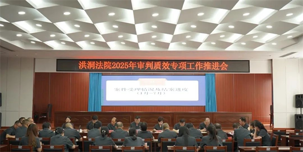 8月14日,洪洞法院组织召开审判质效专项工作推进会,深入分析当前审判执行工作运行态势,研究部署接下来审判执行工作重点任务。院党组书记、院长侯文锋出席会议并讲话,院党组副书记、主持日常工作的副院长刘媛媛主持会议。其他班子成员、全体员额法官参加会议。