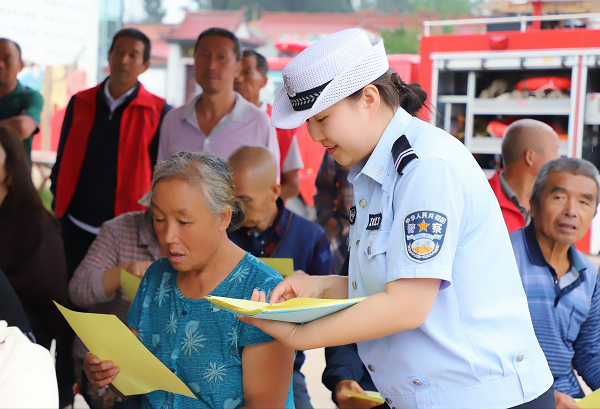 为传承中华优秀传统文化,营造温馨浪漫的节日氛围,8月29日上午,由沁县新时代文明实践中心、沁县县委社会工作部主办的“移风易俗倡新风,情满七夕践文明”七夕节主题活动在南里乡中里村举办,作为协办单位之一的沁县交警大队民辅警早早便将交通安全知识送到了群众的家门口。 在飒飒秋雨中,宣传民警来到群众身边,通过发放宣传资料、普及道路交通法律法规知识和日常出行注意事项,围绕“一盔一带”主题详细宣讲“一盔一带”的安全防护作用,以及常见的酒后驾驶、分心驾驶、超员超速、违法载人等交通违法行为的严重危害,提醒大家出行时要自觉遵守交通规则,养成“戴盔系带”的良好习惯,确保自身和他人的生命财产安全。