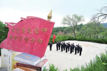安泽县公安局第三党支部走进红色教育基地开展“红色主题党日”活动,在庄严宣誓中锚定忠诚方向。张智远摄