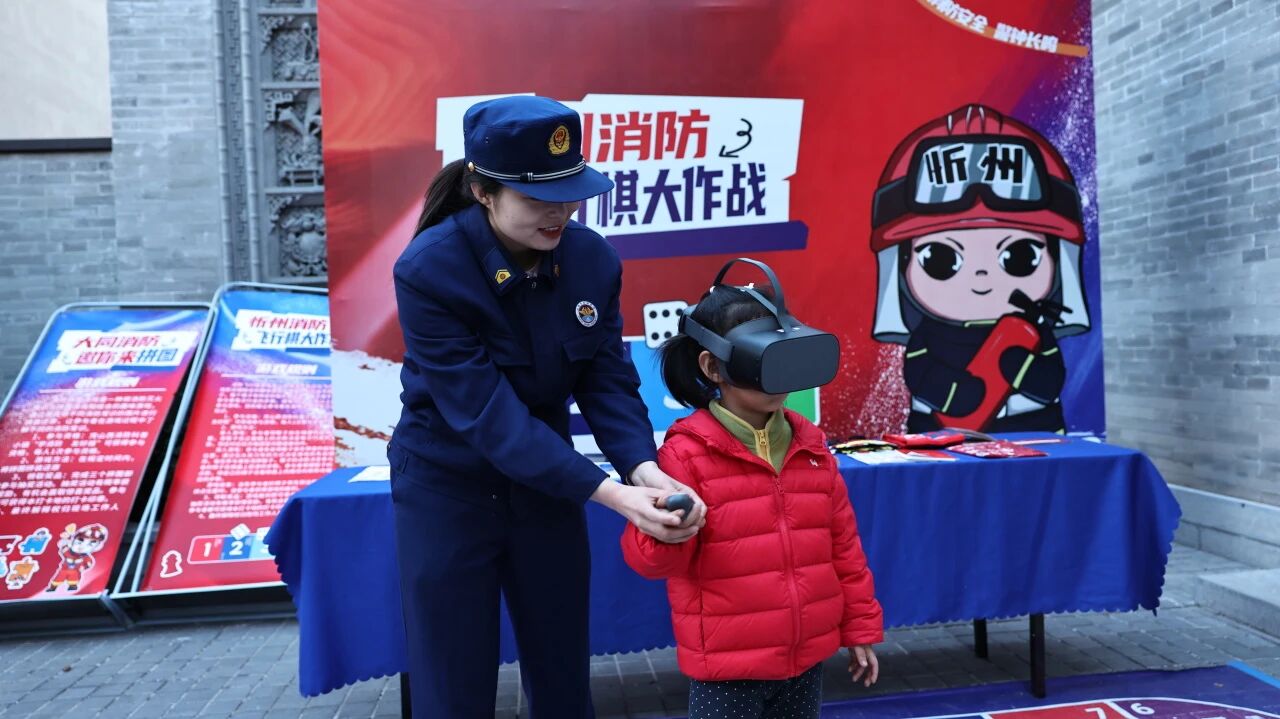 而另一边,忻州消防设置的VR|AR火灾扑救、逃生模拟体验区,也深受孩子们和家长的喜爱,每一位参与者都玩得不亦乐乎。