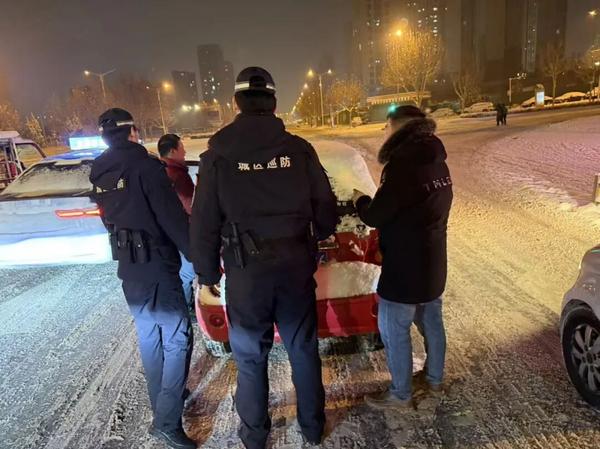 冰天雪地中,暖心的故事在不断发生。19日晚,巡警大队四中队巡逻组执勤至太行南路时,发现一名群众正冒雪艰难推行电动车。巡逻人员立即下车询问,得知他是来接自己的女儿放学,返家途中电动车电量耗尽,又遇道路结冰上坡,只能推车前行。民辅警们二话不说,合力将车推至平缓路段,并一路护送至其家门口。