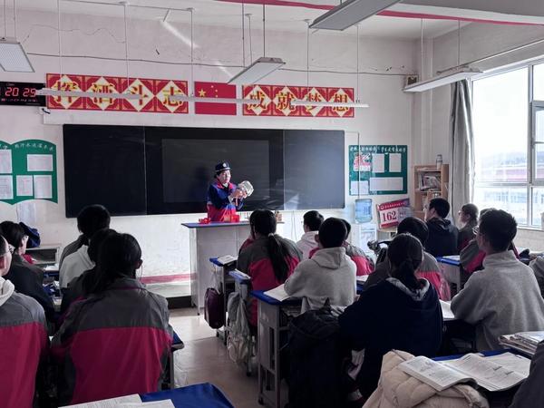 寒假前夕,五寨大队走进五寨中学,开展校园消防安全宣传活动。宣传员通过知识讲解、互动问答,向学生普及防火、报警及火场逃生要领。