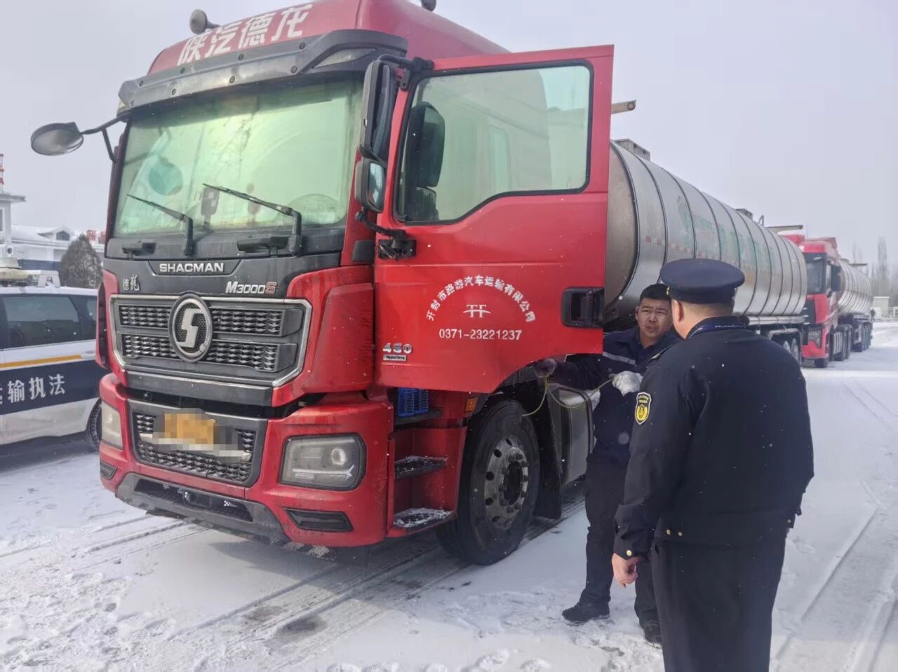 为保障大件运输车辆通行顺畅,助力企业生产经营,朔州支队二大队执法人员顶风冒雪,主动奔赴诺浩机电有限公司开展大件运输车辆现场勘验,以风雪中的坚守诠释执法为民初心使命。